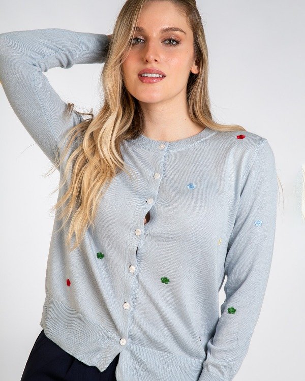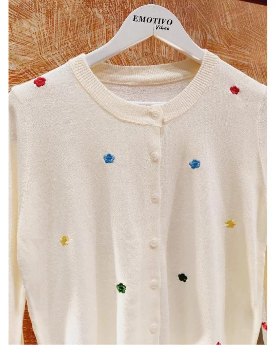 IMPORTADO CARDIGAN BORDADO DE FLOR MULTICOLOR