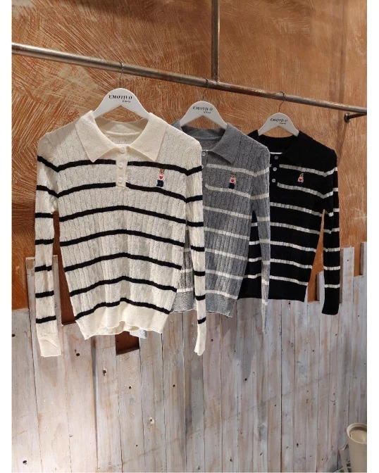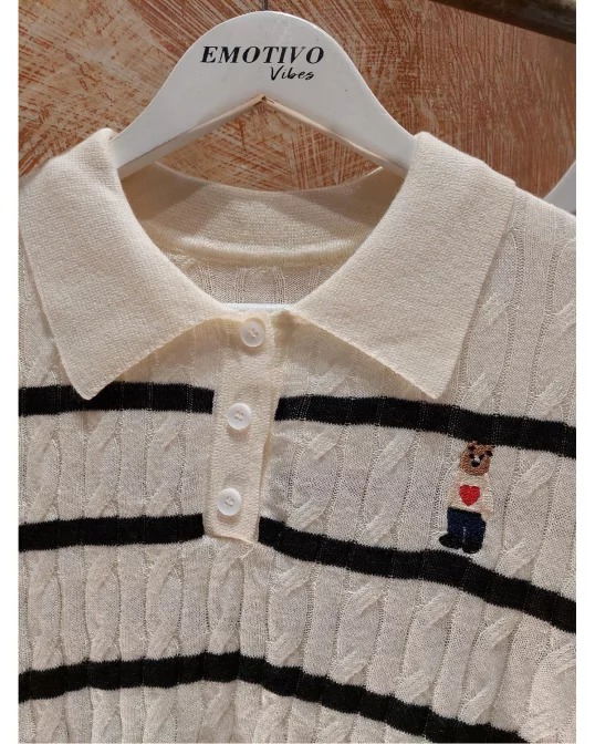IMPORTADO CHOMBA RAYADO BORDADO CON OSITO