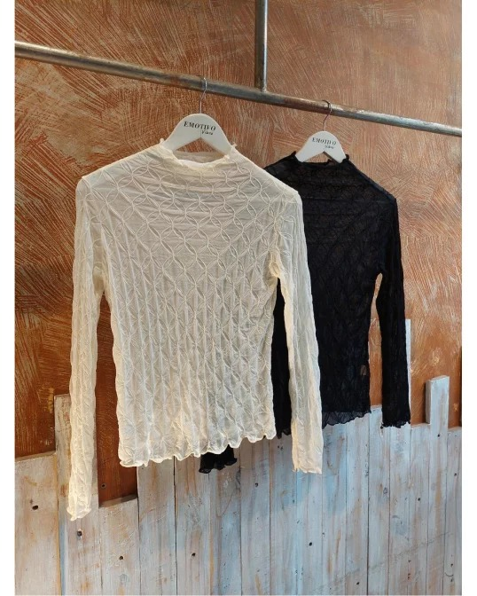 IMPORTADO MEDIA POLERA CUELLO RULOTE ROMBO CON CIRCULO