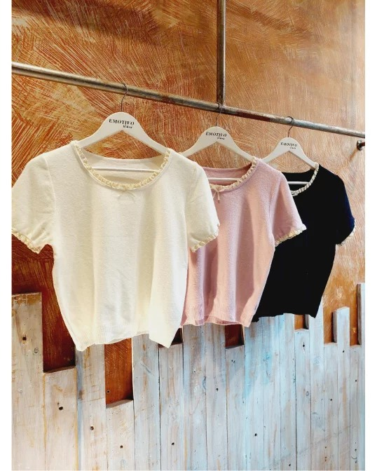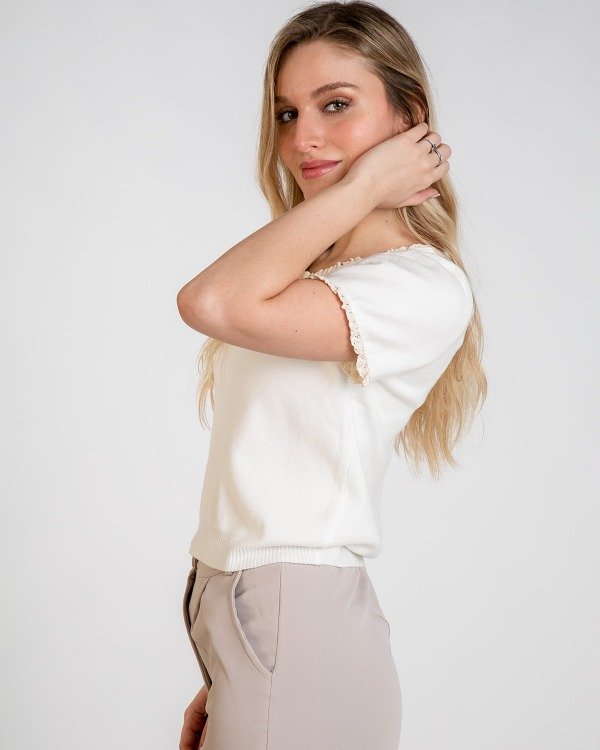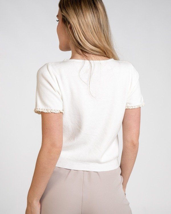 LANA MANGA CORTA VOLADO DE ENCAJE EN CUELLO Y MANGA