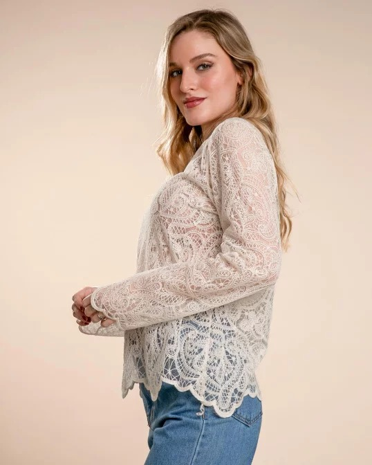 CAMISETA DE ENCAJE CON CUELLO COMBINADO