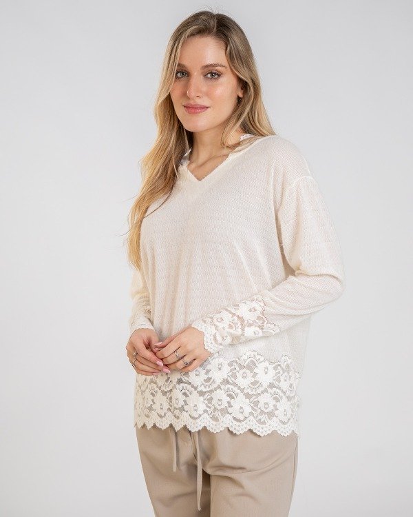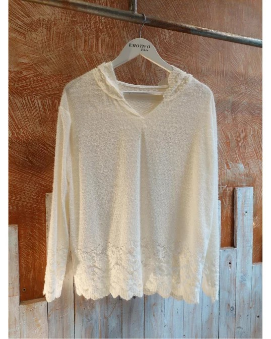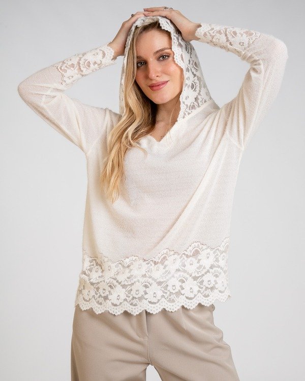 BUZO CON CAPUCHA COMBINADO CON ENCAJE